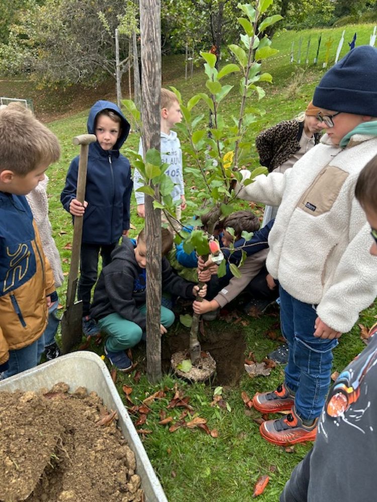 Als Umweltschule leisten wir gerne einen positiven Beitrag für die Natur und erfreuen uns immer, wenn wir unseren Pflanzen beim Wachsen zusehen und schließlich auch deren Früchte ernten können. Gesponsert wurde der Prachtbaum von unserem Elternbeirat und mit tatkräftiger Unterstützung von Herrn Fritz von der Klasse 1b mit ihrer Lehrkraft Susanne Wensauer eingepflanzt.