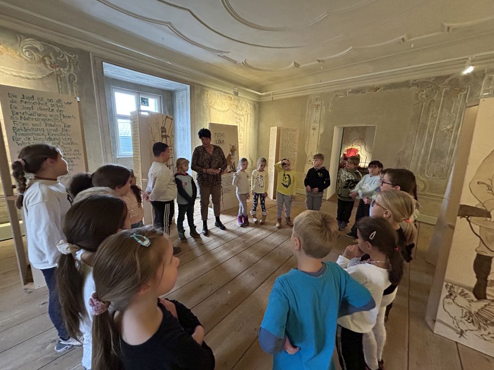 Im Rahmen des Schulprogramms "Film- und Naturerlebnis" marschierten die 2.Klassen heute gut gelaunt ins Museum "Jagd Land Fluss" im nahegelegenen Schloss Wolfstein- von welchem unsere Schule sogar den Namen trägt. Es wurden die Filme "Ernähre die Erde!" und "Werde zum Lebensmittelretter!" angeschaut. Während eine Gruppe die Kurzfilme genoss, durfte die zweite eine Führung mit der Museumspädagogin Ramona Kesten durch das tolle Museum erleben.