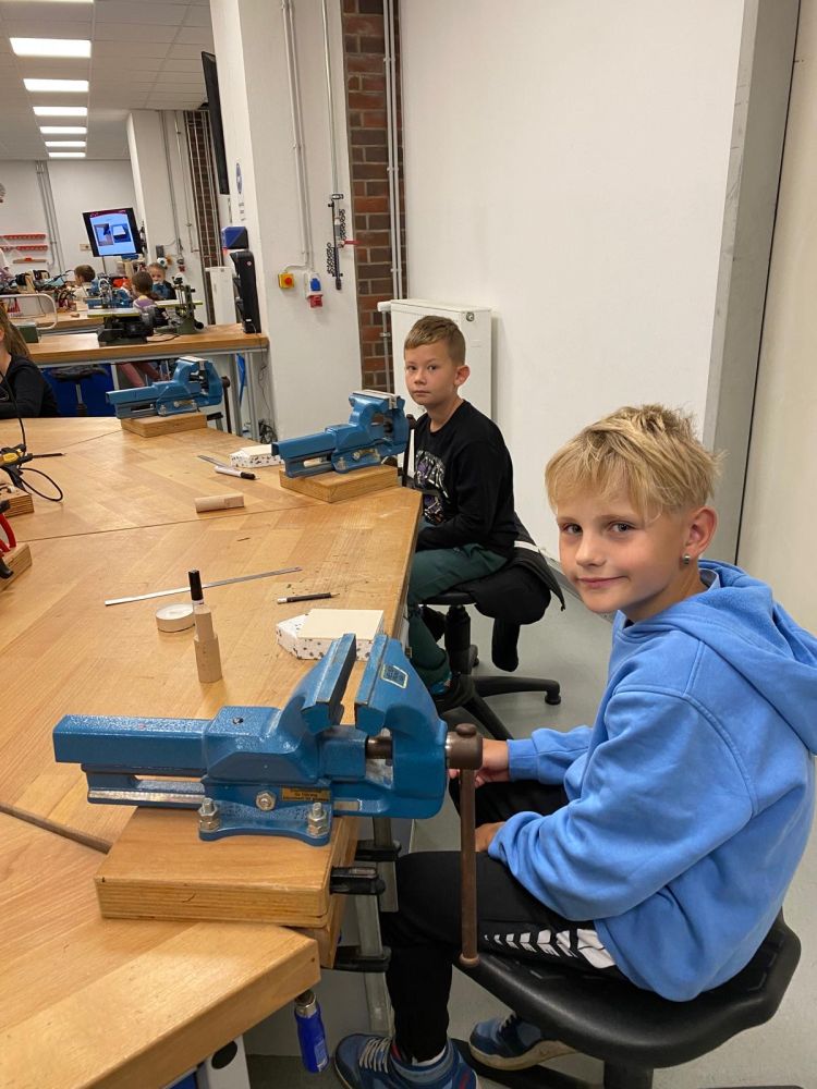 In drei Gruppen wurden Knatterboote und Ventilatoren hergestellt. Die Werkstücke durften die Kinder anschließend mit nach Hause nehmen.