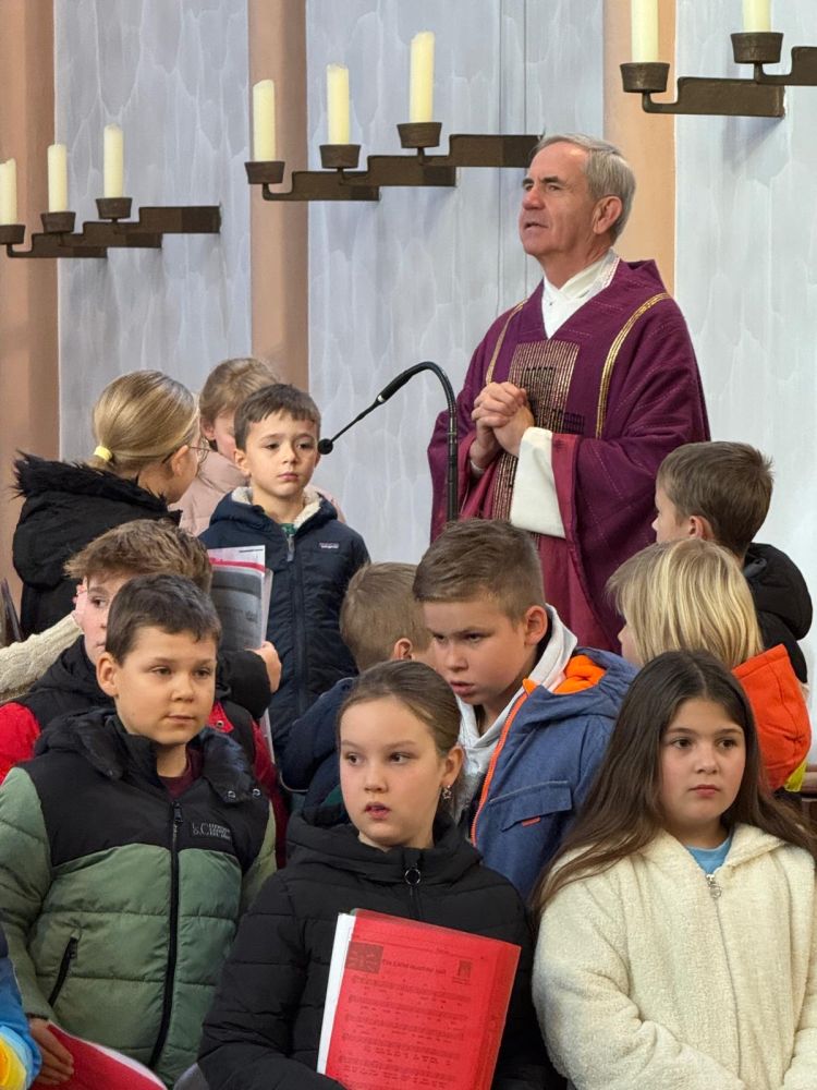 Am 1. Advent fand in der Stadtpfarrkirche Freyung ein Familiengottesdienst statt. Die Grundschule am Schloss Wolfstein beteiligte sich wie in den letzten Jahren auch an der Mitgestaltung der Messe. Im Unterricht lernten die Kinder bei Frau Frauenauer die Lieder kennen und diese auch gut zu singen.
