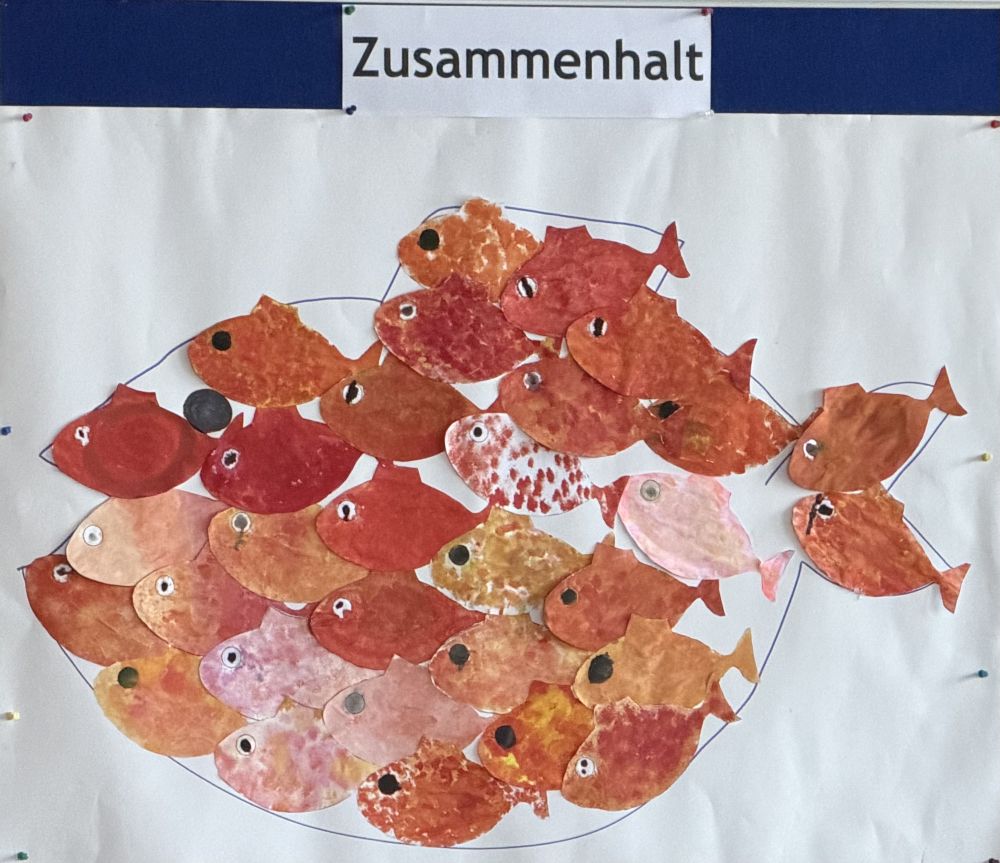 Heute stellte uns die Klasse 3a mit Frau Bauer den Wert "Zusammenhalt" vor. Auf der Basis des Buches "Swimmy" von Leo Lionni machten die Kinder darauf aufmerksam, auf was es beim Zusammenhalten ankommt, und was gemeinsam bewirkt werden kann.