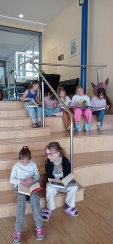 Die Kinder der Klasse 2a schmökern fleißig in den Lieblingsbüchern.