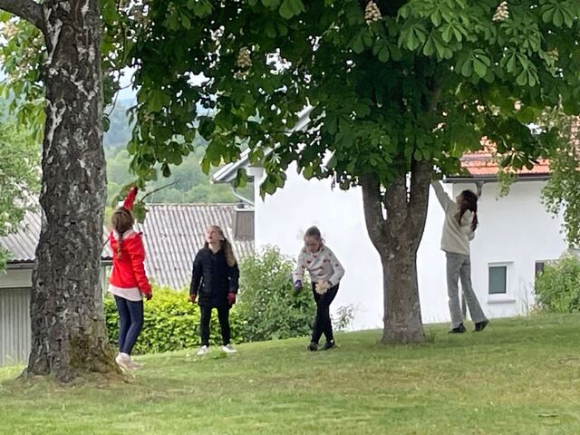 Im Anschluss an das Restaurieren wurde das Haus sogar mit Blättern und Blumen geschmückt, um es attraktiv für die Tiere zu machen. Eigentlich fehlte nur noch eine Hebefeier ...