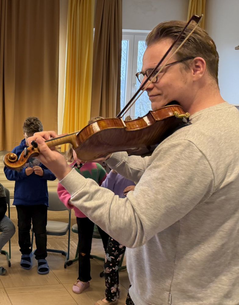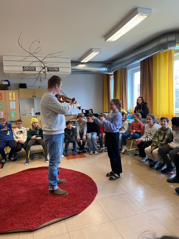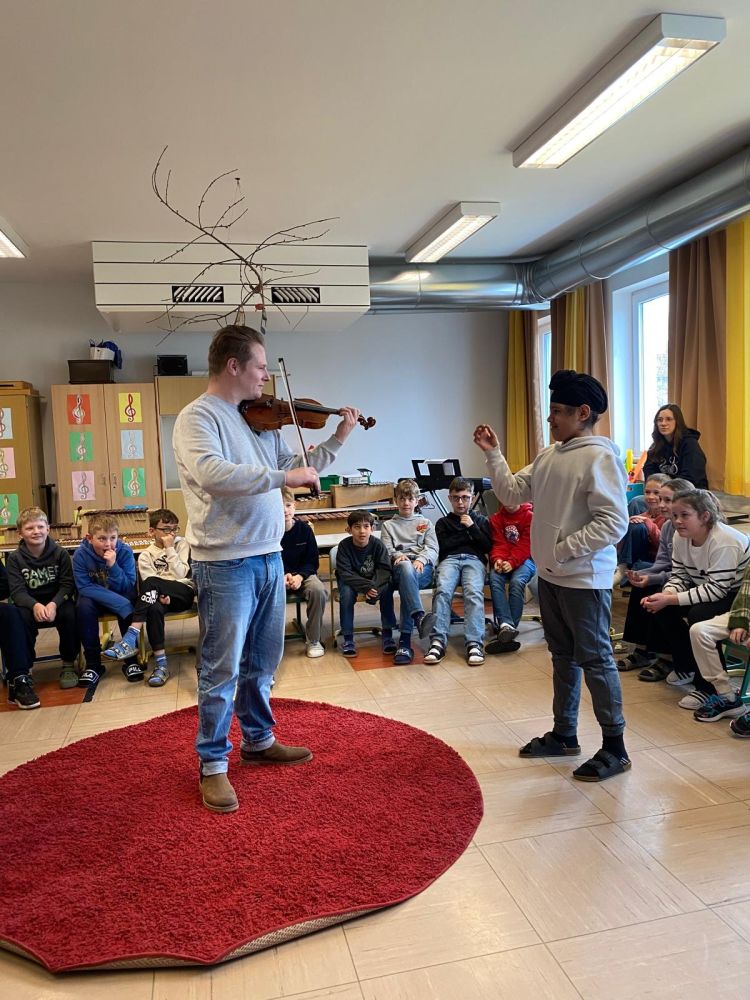 Herr Hahn bot uns auch Einblicke in den Aufbau einer Geige und in die Arbeit des Dirigenten. Besonders aufregend war, dass wir ihn bei seinem Spiel dirigieren durften. Schnell, langsam, laut, leise,...