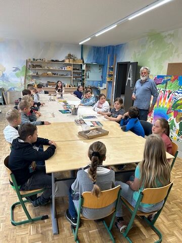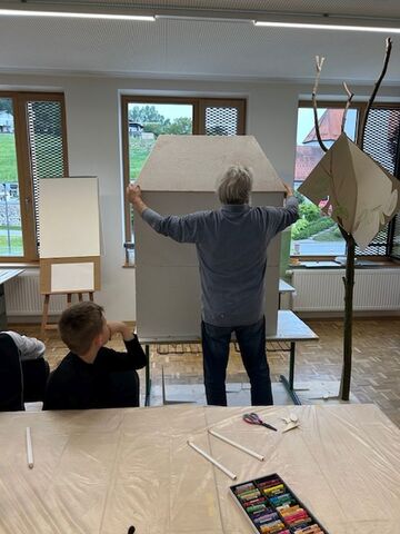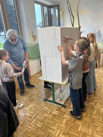 Die Klasse 3a durfte als erste die Kreativwerkstatt im Dorfgemeinschaftshaus Kumreut besuchen. Unter Anleitung des lokalen Künstlers Rudi Ranzinger gestalteten die Kinder ein plastisches Schloss Wolfstein, das den Eingangsbereich unserer Grundschule mit demselben Namen zieren soll. Dach und einzelne Wände sind schon fertig. In der kommenden Woche dürfen die Klassen 3b und c kreativ werden.