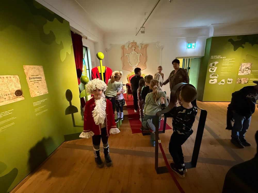 Im Rahmen des Schulprogramms "Film- und Naturerlebnis" marschierten die 2.Klassen heute gut gelaunt ins Museum "Jagd Land Fluss" im nahegelegenen Schloss Wolfstein- von welchem unsere Schule sogar den Namen trägt. Es wurden die Filme "Ernähre die Erde!" und "Werde zum Lebensmittelretter!" angeschaut. Während eine Gruppe die Kurzfilme genoss, durfte die zweite eine Führung mit der Museumspädagogin Ramona Kesten durch das tolle Museum erleben.