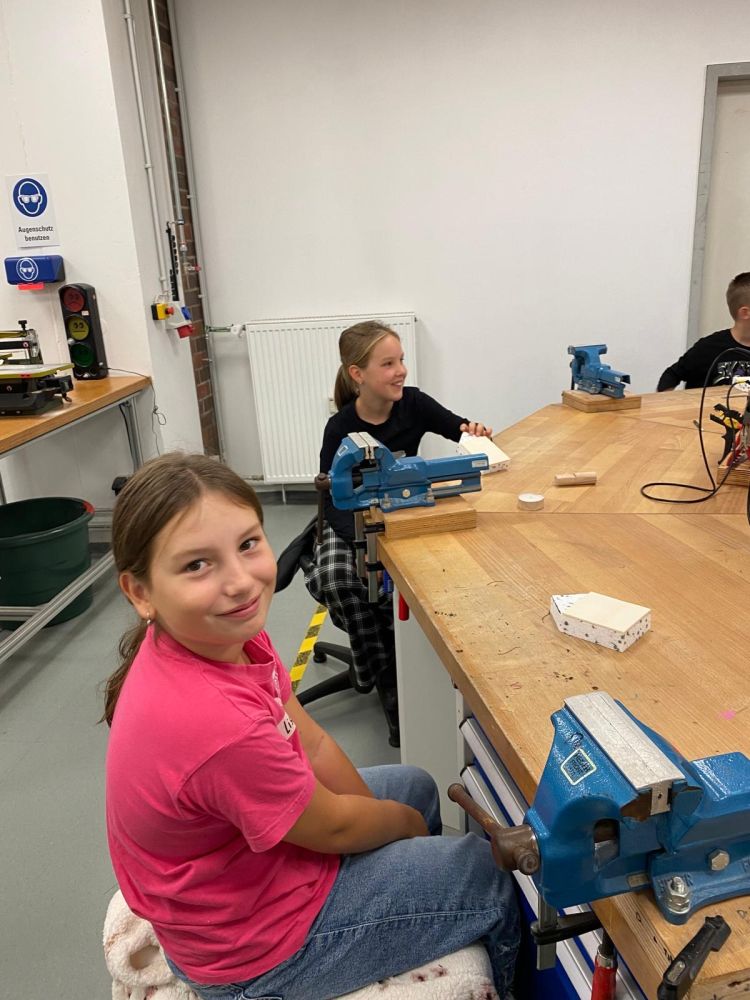 In drei Gruppen wurden Knatterboote und Ventilatoren hergestellt. Die Werkstücke durften die Kinder anschließend mit nach Hause nehmen.