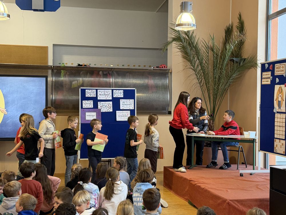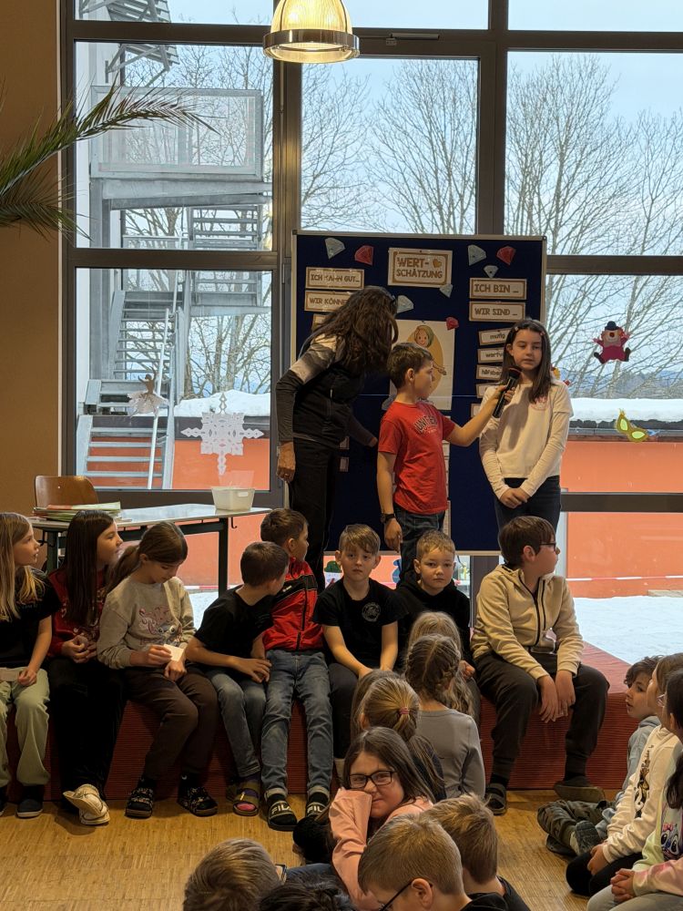 Mit viel schauspielerischem Geschick brachte uns die Klasse 3b mit ihrer Lehrkraft Frau Grötzinger in einem kurzen Theaterstück den Wert dieses Monats näher: Die Wertschätzung.