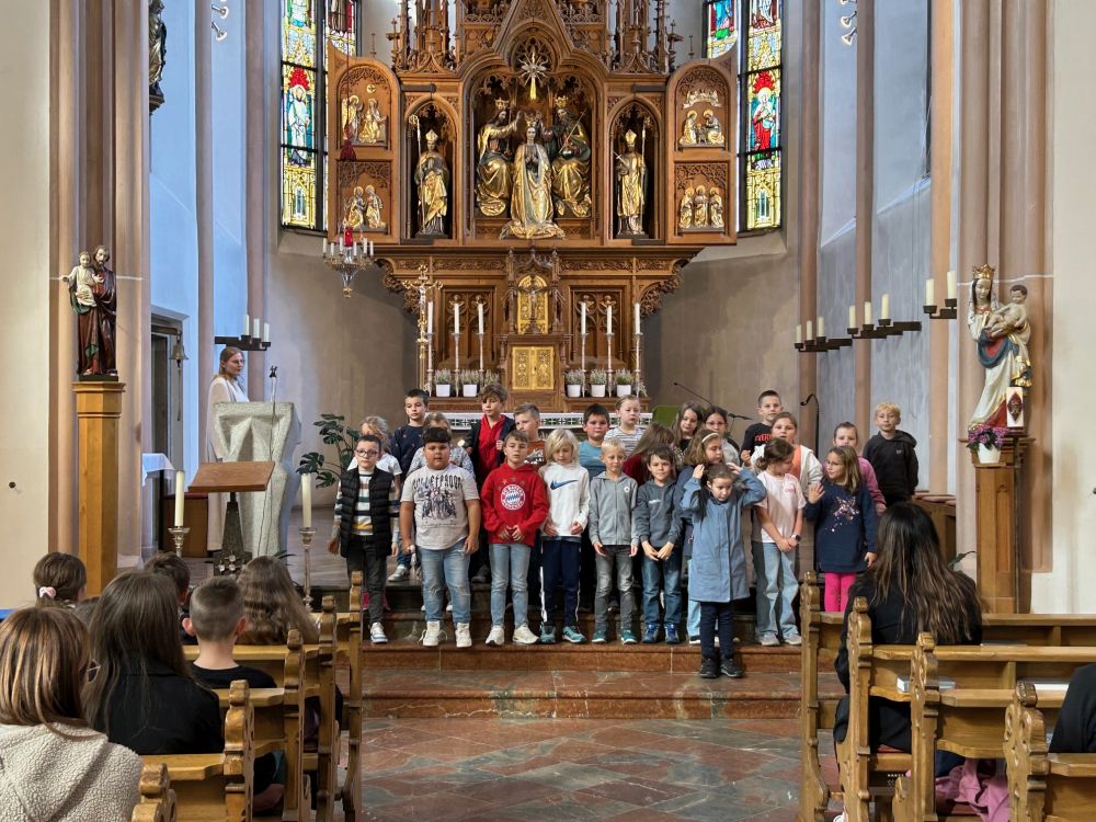 Die Kinder der Klasse 4a trugen die Fürbitten vor und gestalteten gemeinsam mit den zweiten Klassen den Gottesdienst musikalisch.