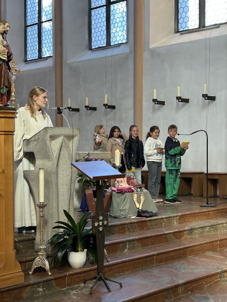 Was würden wohl unsere Füße von den Ferien erzählen? Wohin haben sie uns getragen? Mit diesen Fragen startete die Pastoralreferentin Anna- Lena Liebl in den Gottesdienst. Und natürlich wusste unser Schuhwerk eine ganze Menge zu berichten.